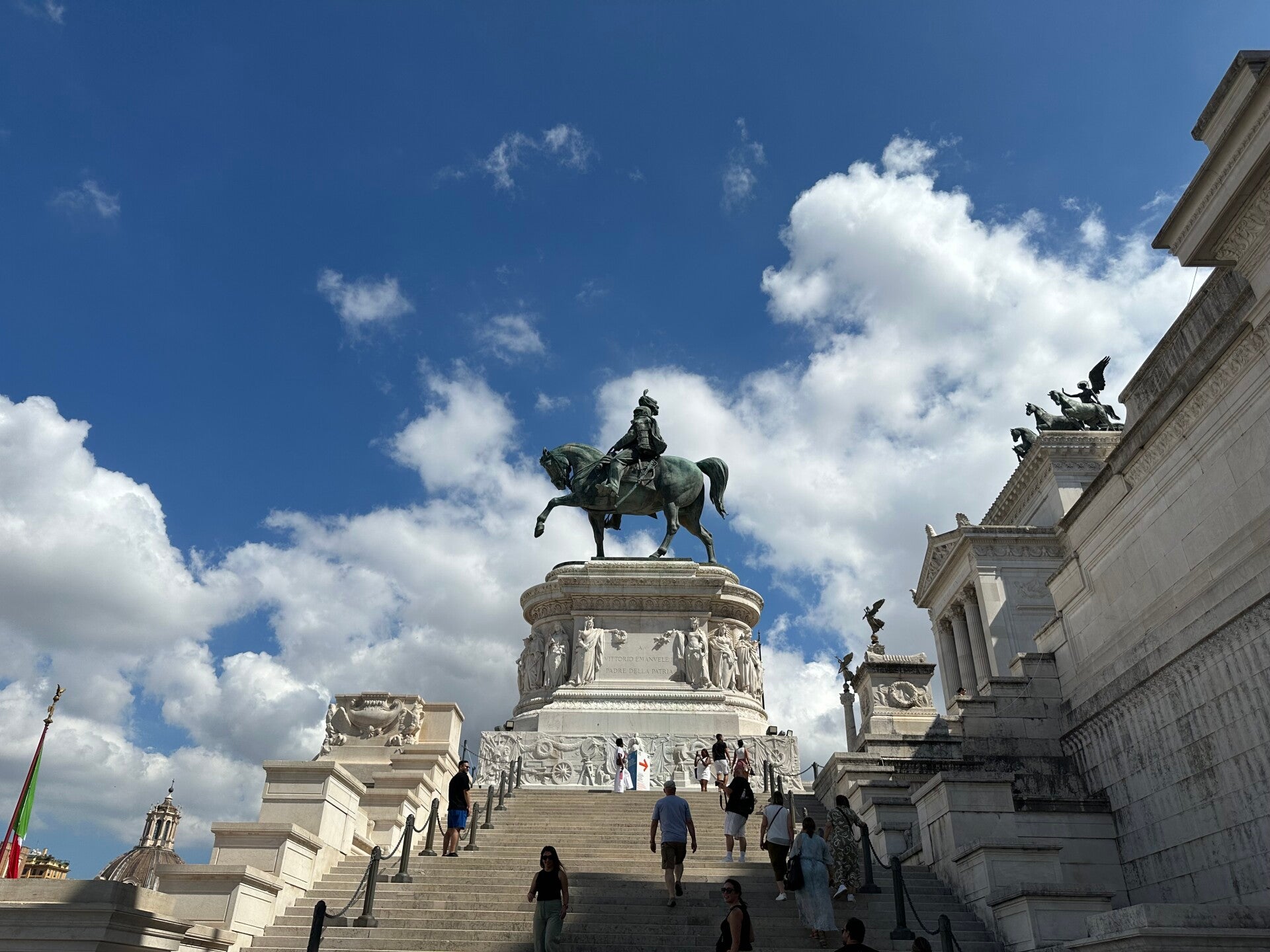 Our day concluded with a visit to the monumental Victor Emmanuel II Monument. It does indeed look like a white wedding cake, as I had heard! Riding the elevator to the top, we were rewarded with incredible views of Rome, a truly breathtaking panorama that offered a perfect end to a day filled with exploration and awe across the city.